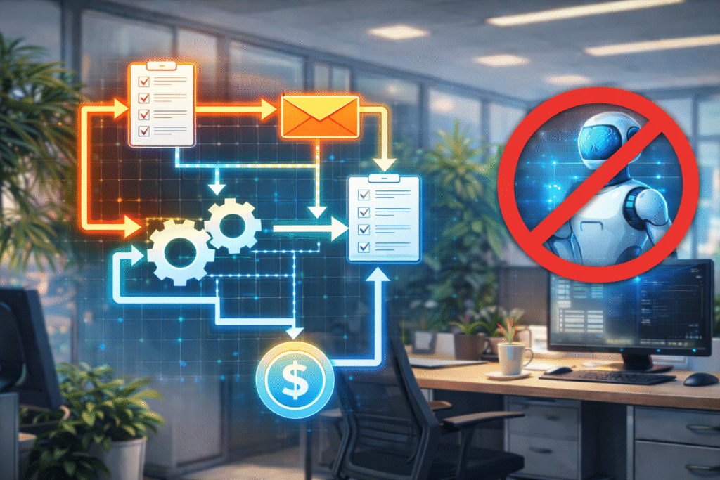 Automation and AI are not the same thing. While AI gets the attention, most operational efficiency comes from simple, rule based workflows that move information clearly and predictably across systems. You can unlock meaningful gains without adding intelligence at all.